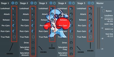 A stage limiter is several limiters that feed into one another in series. Making several limiters do a little bit of work instead of one limiter doing a lot of work. FUCK YEA!